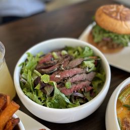 Wooly Pig is a fantastic Asian fusion restaurant that has quickly become one of my favorite casual hangout spots with friends. One dish that stood out to me is their salad, which I absolutely loved. The vegetables were incredibly fresh, crisp, and flavorful, making it a refreshing and satisfying choice. It's clear that Wooly Pig places a high priority on using quality ingredients, and it shows in the taste and presentation of their dishes. What I particularly appreciate about Wooly Pig is the wide variety of food they offer, drawing from different cuisines to create a diverse and exciting menu. Whether you're in the mood for something light and healthy or craving a more indulgent, flavorful dish, they have something to suit every palate. The fusion of Asian flavors with other culinary traditions results in unique and delicious combinations that keep me coming back for more. The ambiance at Wooly Pig is also worth mentioning. It's a great casual place to hang out with friends, thanks to its relaxed and inviting atmosphere. The staff is friendly and attentive, always ensuring a pleasant dining experience. Whether you're meeting up for a quick bite, enjoying a leisurely meal, or just spending quality time with friends, Wooly Pig provides the perfect setting. If you're looking for a restaurant that offers fresh, tasty food and a laid-back vibe, I highly recommend giving Wooly Pig a try.